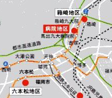 JR博多駅から馬出九大病院前まで約10分(中洲川端にて乗り換え)